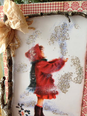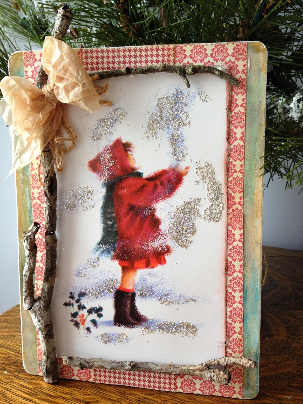 If you stopped by Holiday Home 2012, you saw my handmade farmhouse frame just inside the door. This year its dressed up more vintage winter to get us through the move.