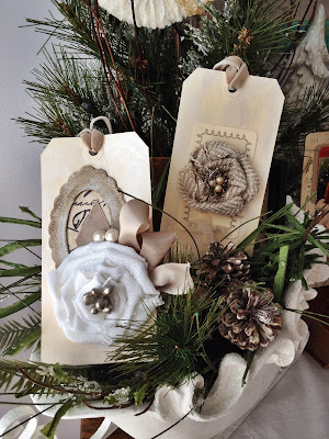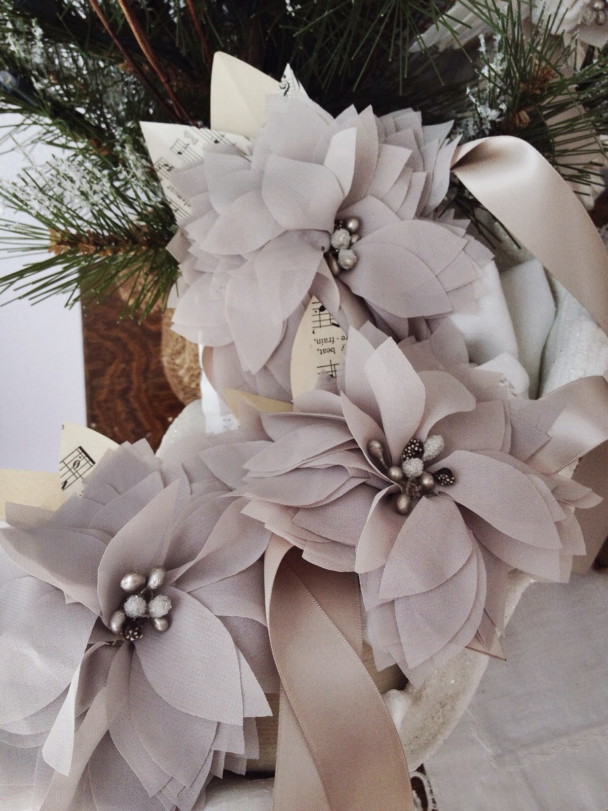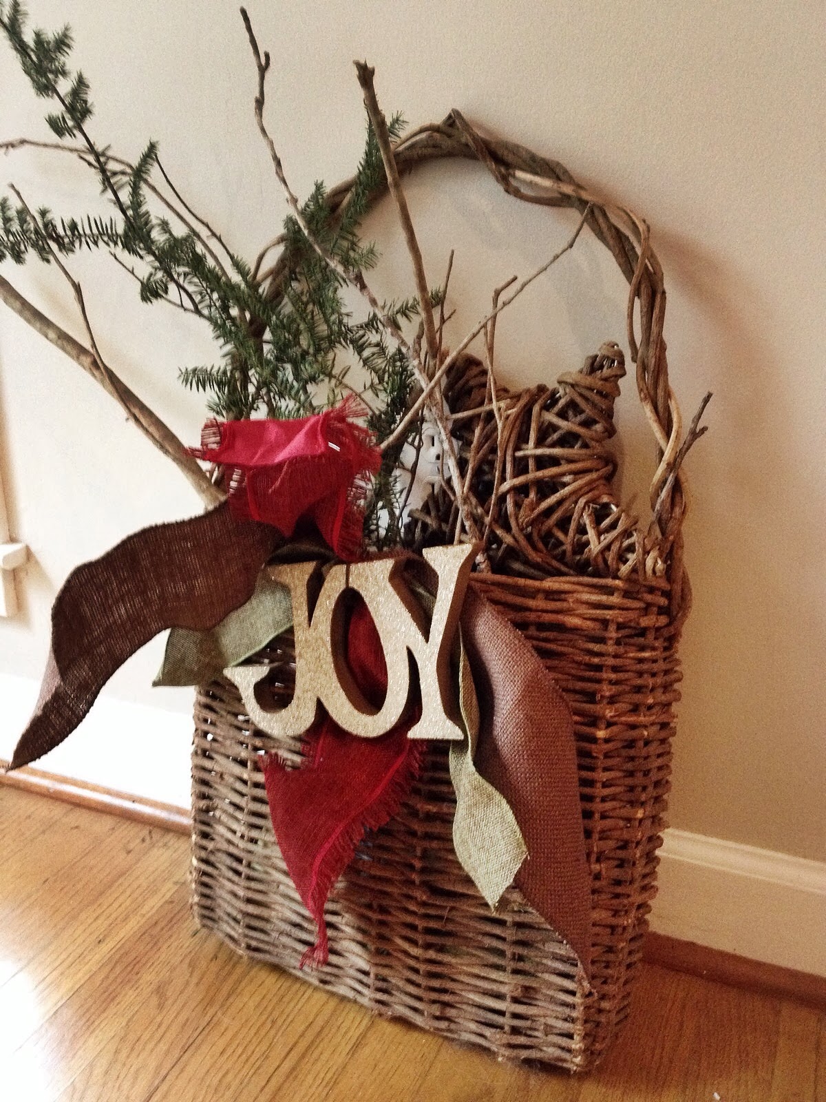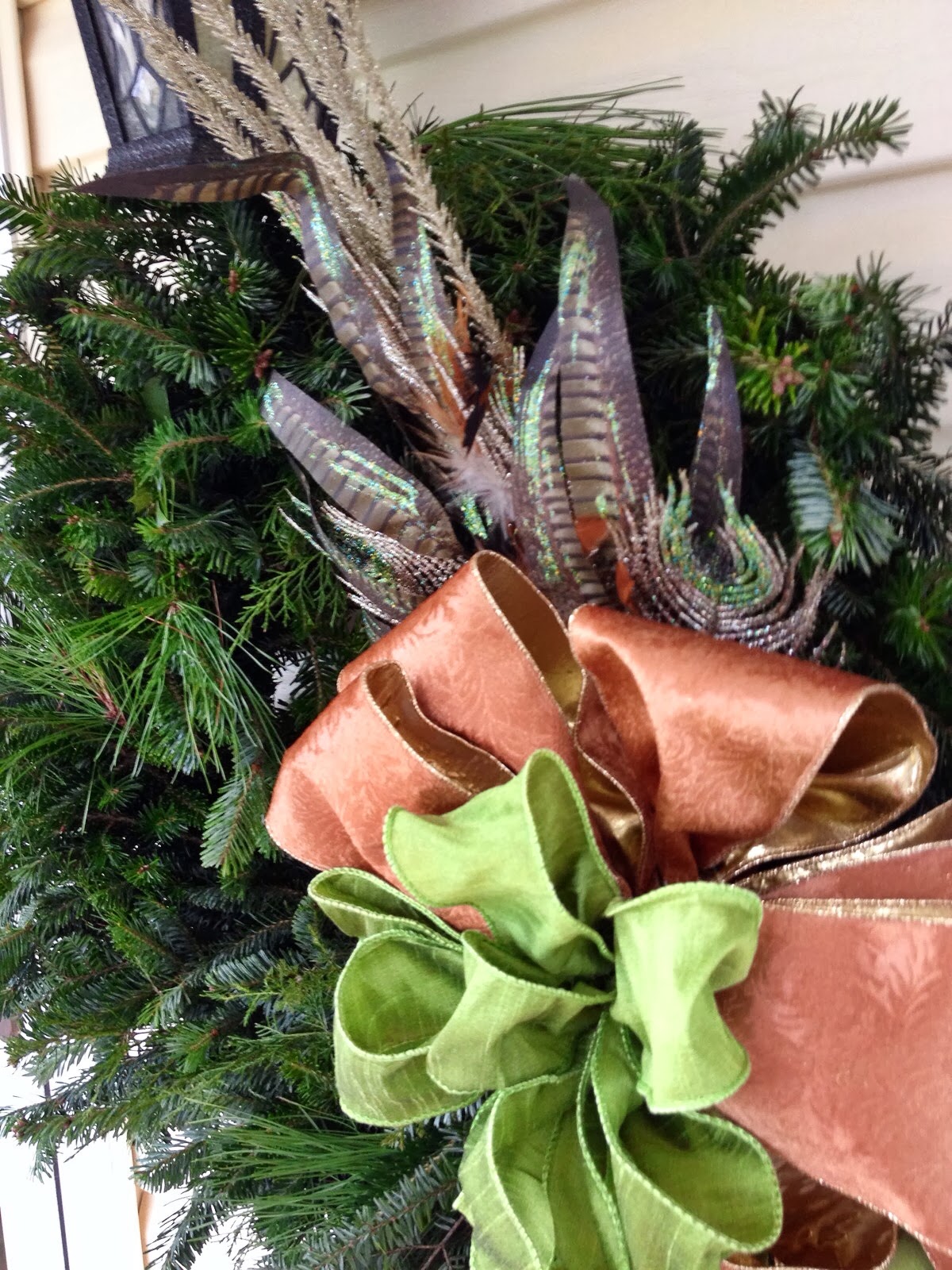 Come on in and have some coffee or cocoa. I went through my Dad's woods and filled in a standard 18 inch wreath (its so fluffy and huge-LOVE!). A local store, Roots of Greenville, has wonderful ribbons and decorating 'doodads' as I call them. I went non traditional this year and LOVE this.